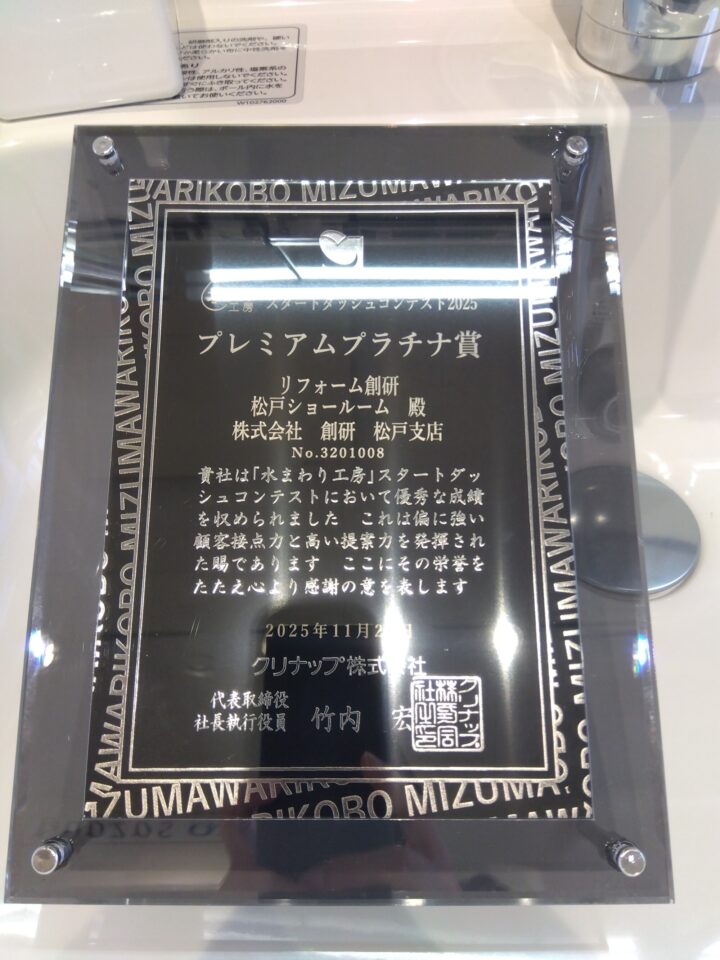 2年連続 クリナップ水まわり工房スタートダッシュコンテスト 松戸支店