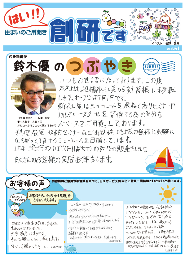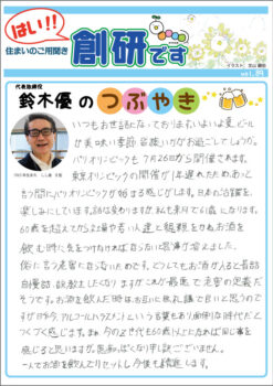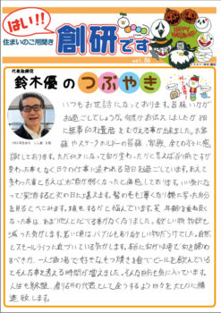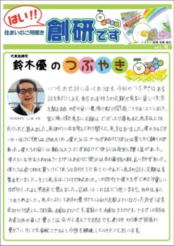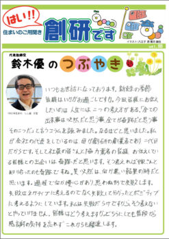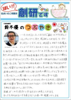 冒頭の社長のあいさつ、社員への一問一答、創研の活動報告に加え、お客様から頂いた声等をご紹介しています。