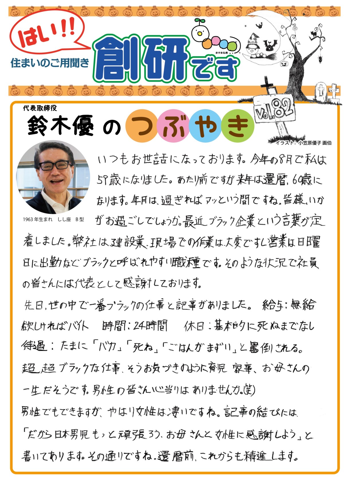社長のつぶやきは、いつもご覧いただいているお得意様に大変親しまれ、私たちの日頃の様子やスタッフの人となりが伝わればと、スタッフ手作りで発行しています。