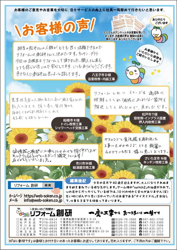 はい!創研です vol.93| リフォーム創研があなたの暮らしを快適にします。