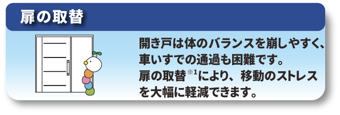 ※1 扉の取替は、開き戸から引戸や折戸へ交換する場合が対象です。