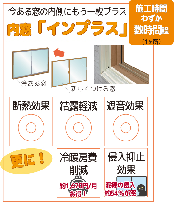 施工時間わずか数時間程 内窓「インプラス」