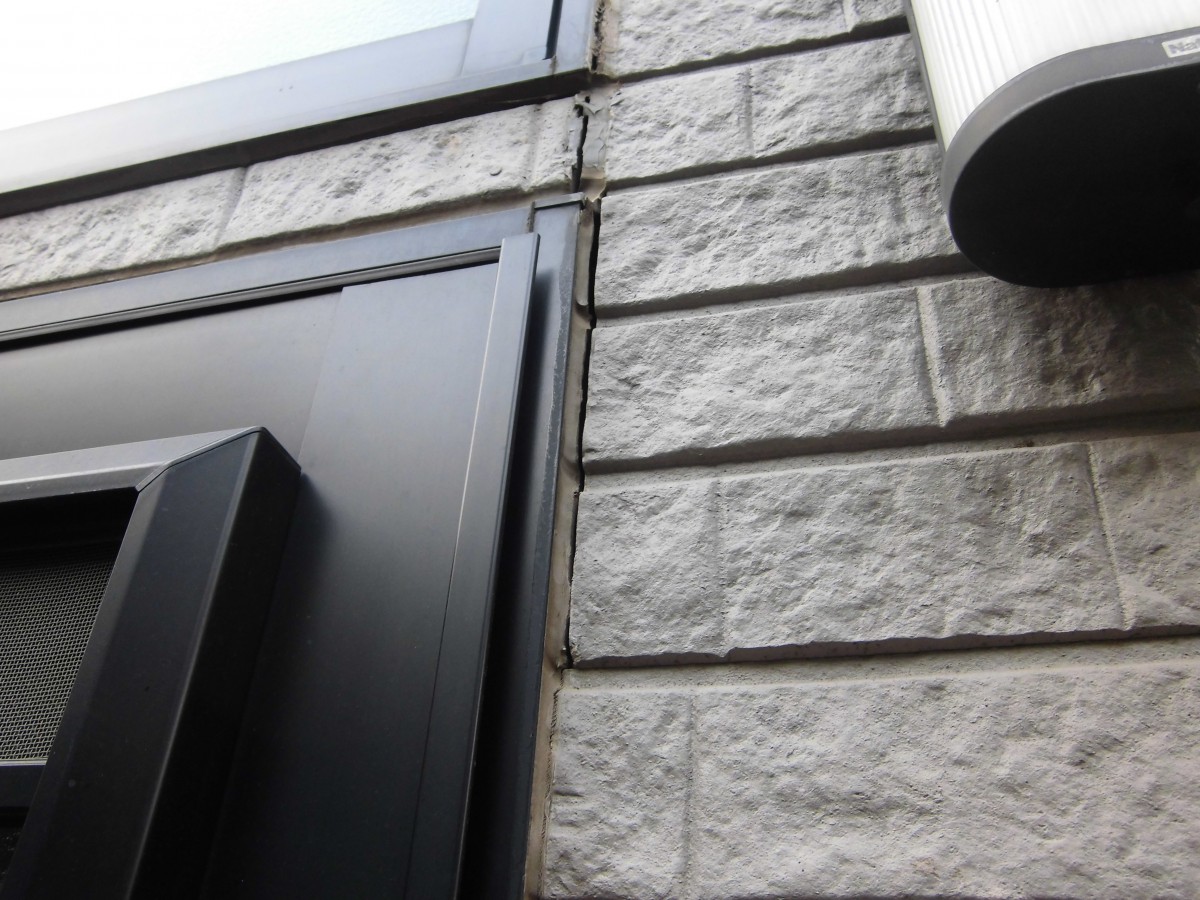 一見きれいなままに見える外壁ですが、新築から15年を経て窓や雨戸などの建具と外壁の接合面の亀裂やヒビがあり強度面でも不安…