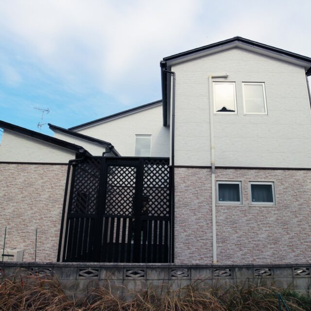 意匠性の高いお宅でしたが、木部が多く、立地が風の通り道になっていたようで、風を受ける側の汚れがひどく、反対側はとてもきれいでした。また塗装をしても風の道が変わらない限りは数年後には同じ状態になってしまいます。建物のダメージの差とお手入れの面も考え、サイディングの上張りをご提案しました。厚さ18mmのサイディングを張るため、断熱効果も期待できます。