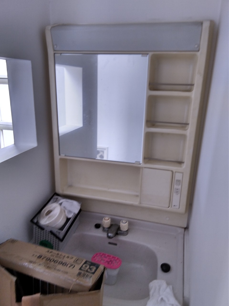 お引越しに伴い、以前ついていた洗面化粧台を交換することにしたお客様。給湯配管がなくてお湯が出ない洗面化粧台が既存で設置されていたのを見て、二階の洗面化粧台にもお湯がだせないか?とご相談でした。