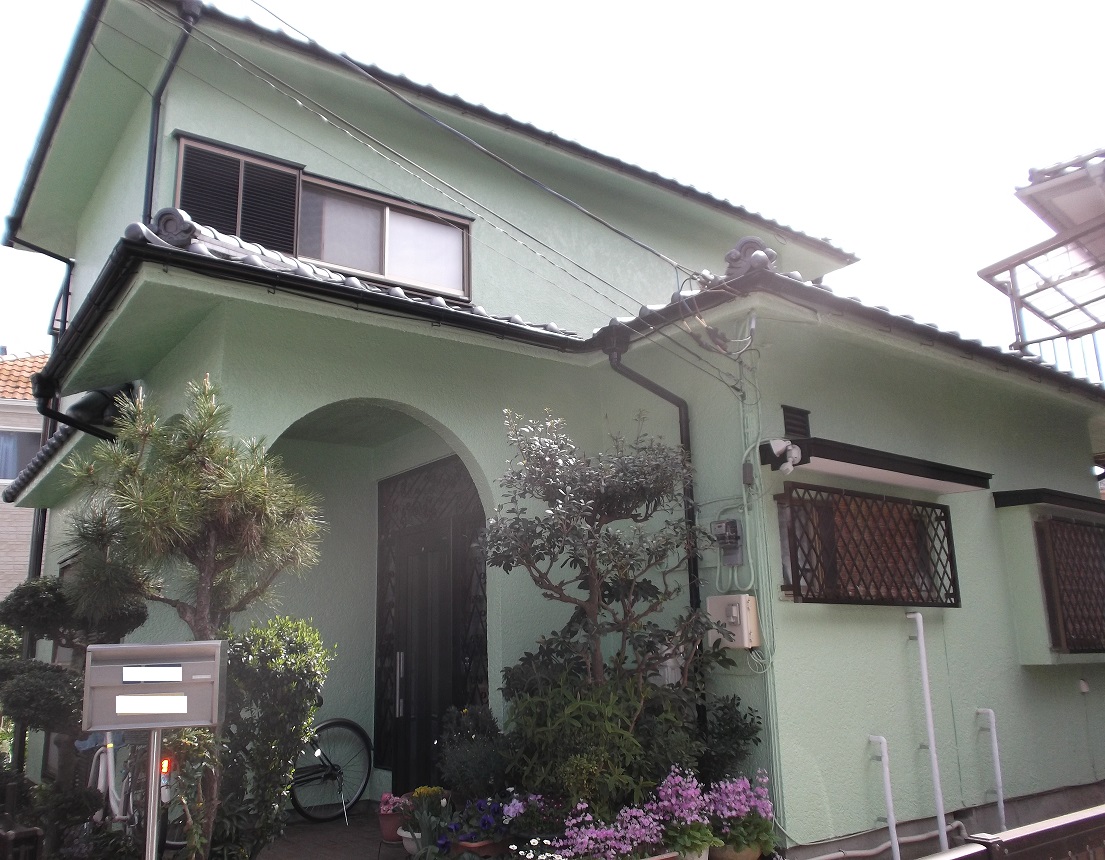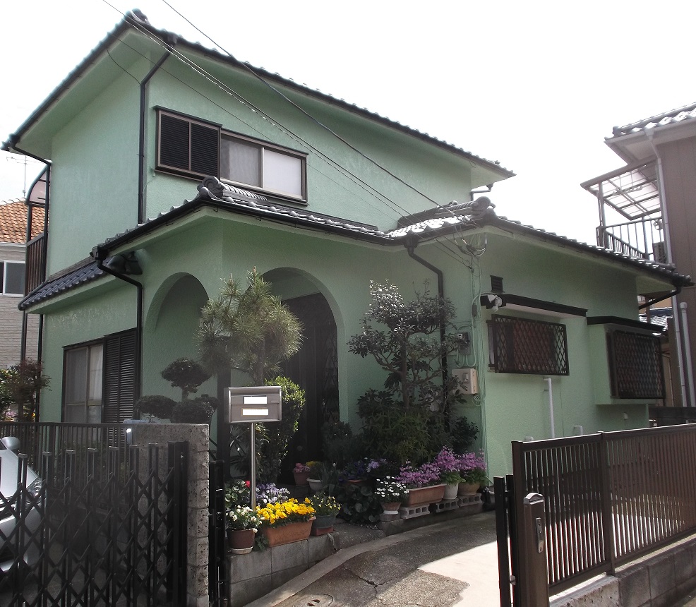 爽やかなグリーンの外壁塗装工事 松戸市