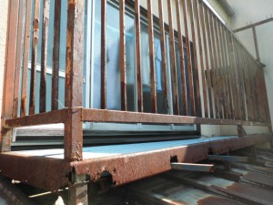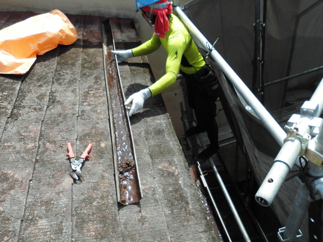 躯体のクラックに注意しながら丁寧に雨どいを外していきます。