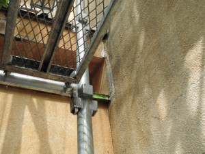 まずは既存の屋根置き型バルコニーを撤去します。はしごをかけて職人の手でパーツごとに取り外しました。