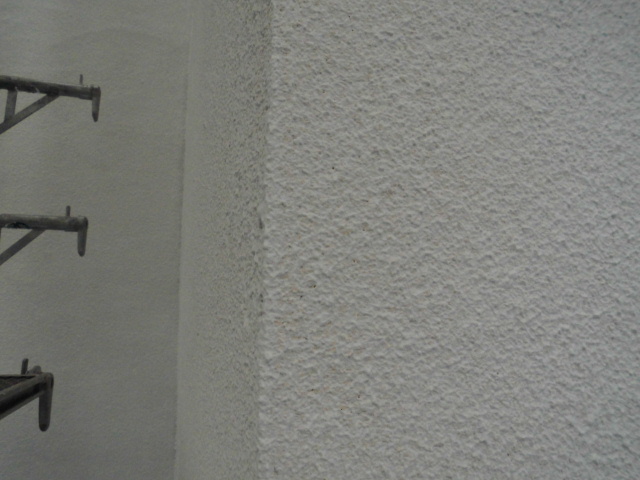 外壁の痛みが激しいので、下地塗料(日本ペイント:パーフェクトフィーラー)が既存壁に吸い込まれます。通常の倍以上塗料が必要です。割れや陥没をパテ処理して下地処理を行います。