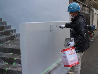 この日は塀の上塗りです。当初かなり汚れていた塀ですが、洗浄と塗装でここまでうつくしくなりました。