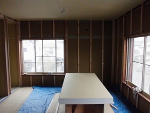 H27.3.20 2階和室を洋間に。大壁にするために下地胴縁を入れます。