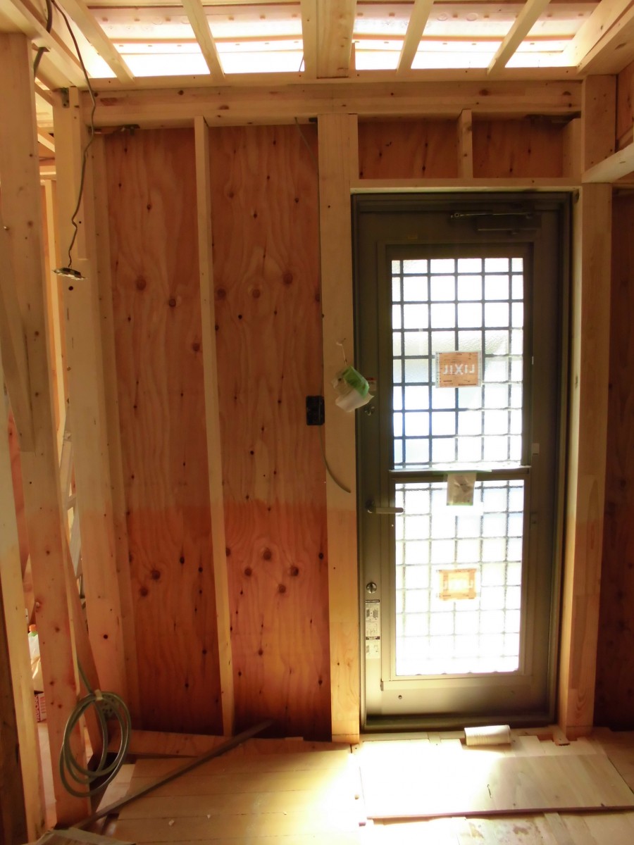 H27.3.12 1階和室を洋間にするため天井を解体、長押も撤去しました。勝手口も新たに作りました。