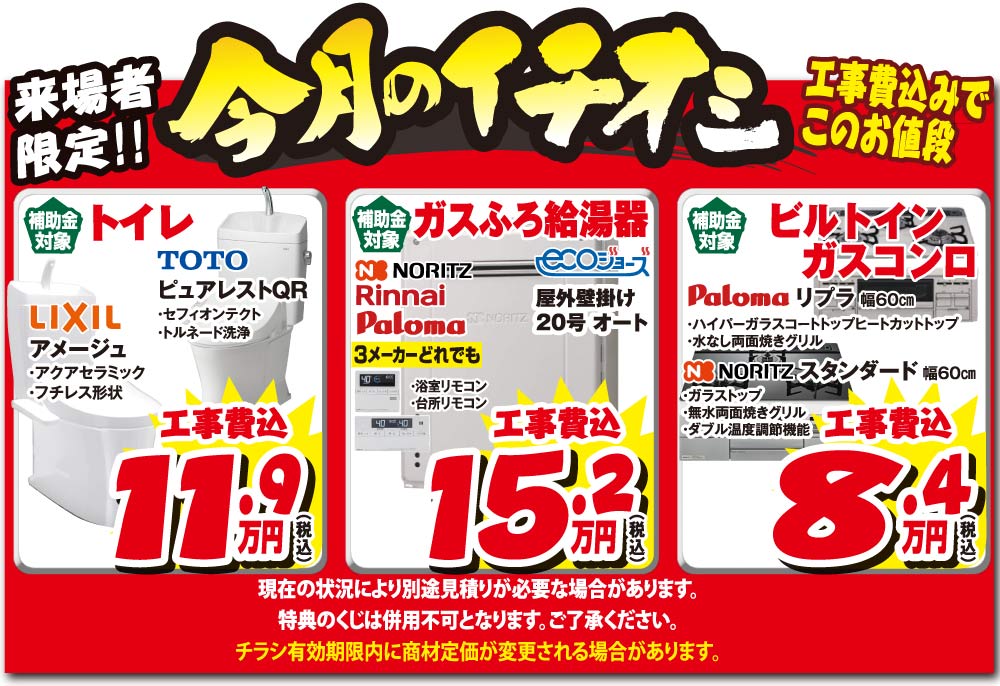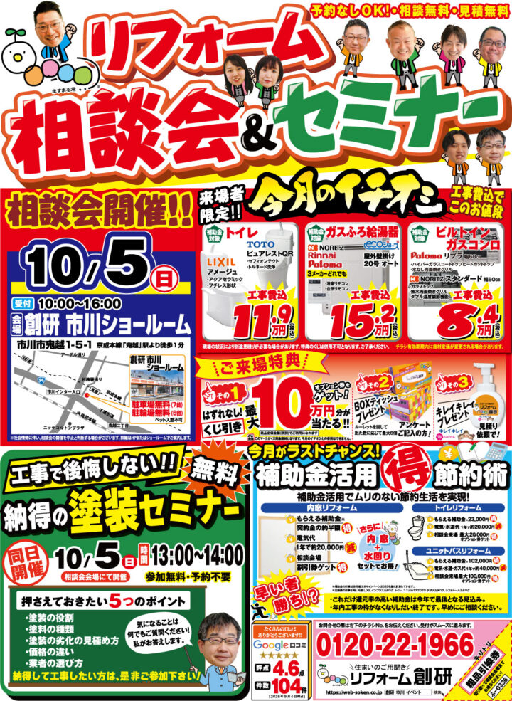 社会情勢により、相談会の開催を中止する場合や、各メーカーの生産状況が全国的に不安定となり、一部商材の納品が送れる場合がございます。