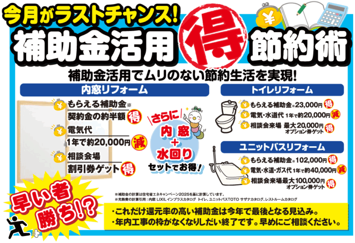 リフォーム補助金の申請期限も残りわずかとなりました!