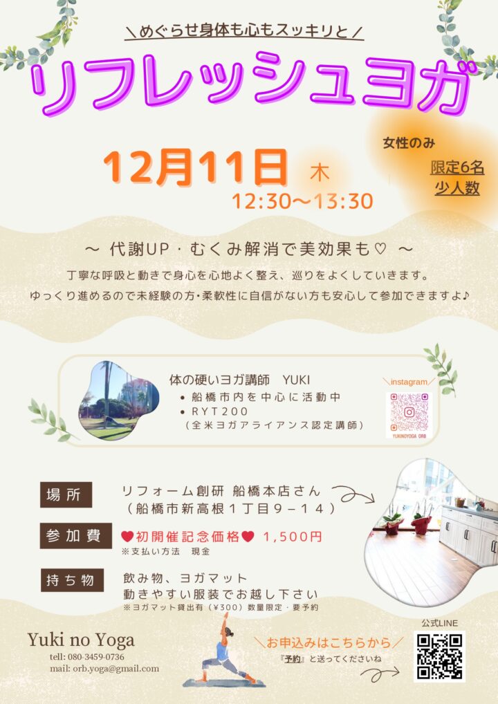 【12/11】 リフレッシュヨガ| リフォーム創研があなたの暮らしを快適にします。