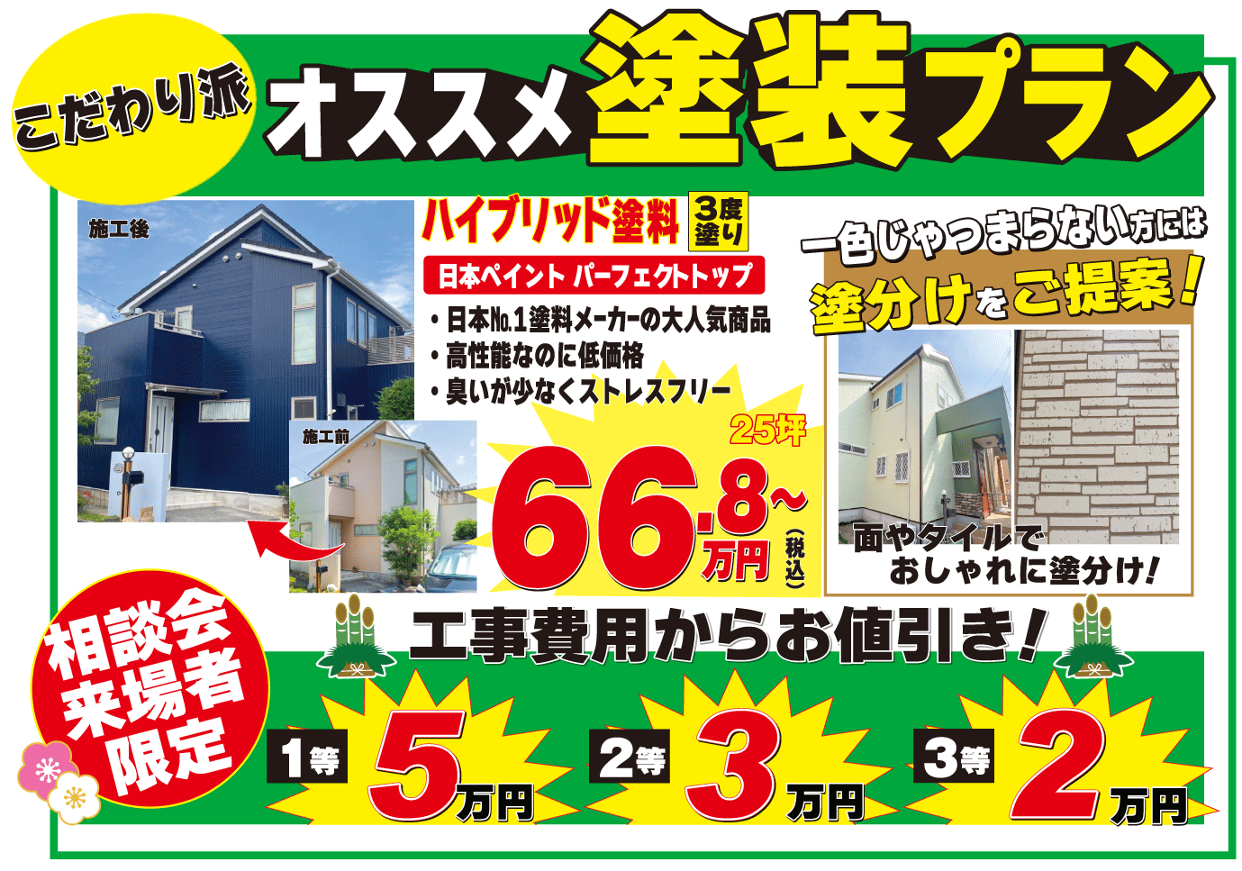 社会情勢により、相談会の開催を中止する場合や、各メーカーの生産状況が全国的に不安定となり、一部商材の納品が送れる場合がございます。