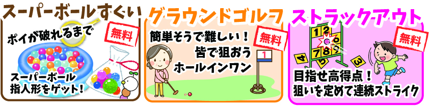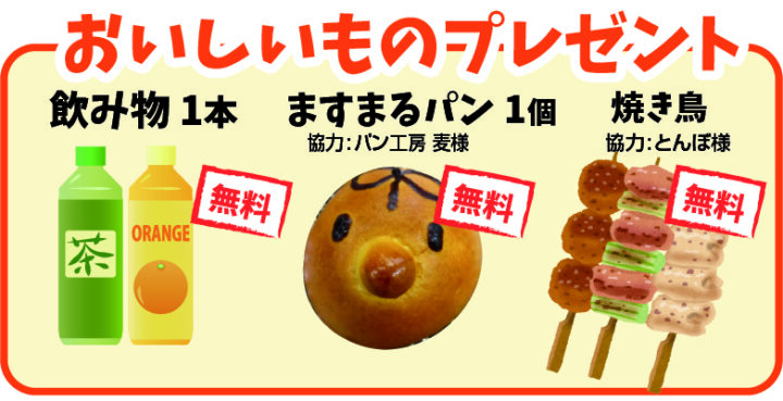 すべて無料です!参加すると景品がもらえます。(数に限りがあります。)
