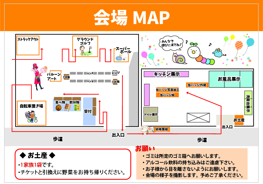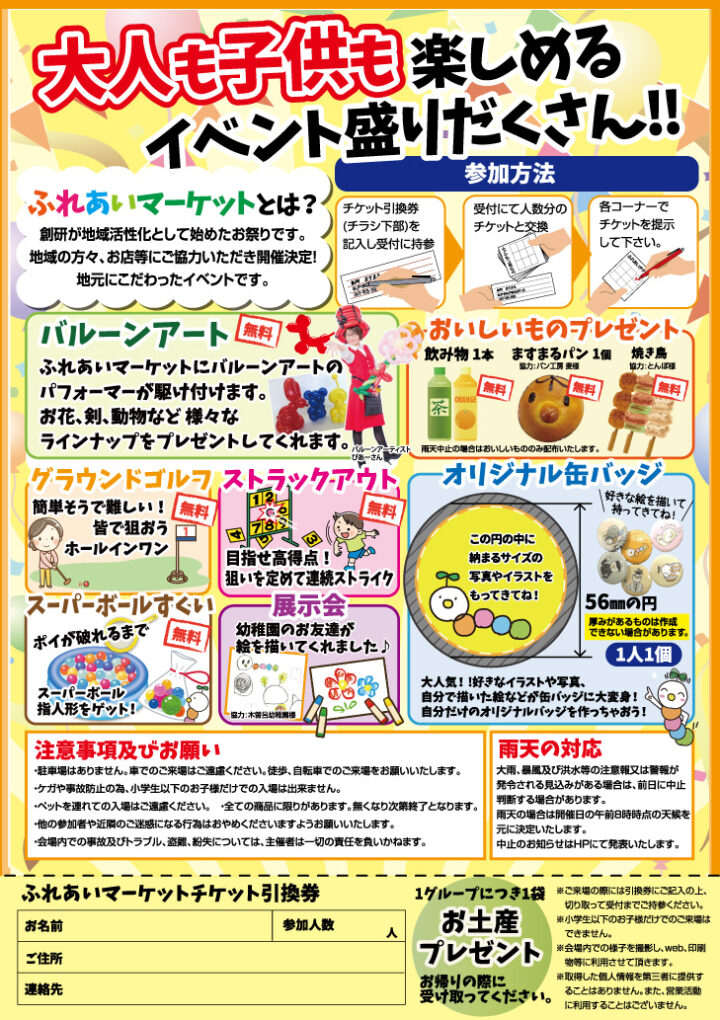 - 受付で参加券に必要事項を記入し受付で、「ふれあいお楽しみカード」と引き換えてください。