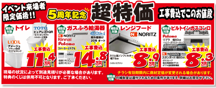 社会情勢により、相談会の開催を中止する場合や、各メーカーの生産状況が全国的に不安定となり、一部商材の納品が送れる場合がございます。