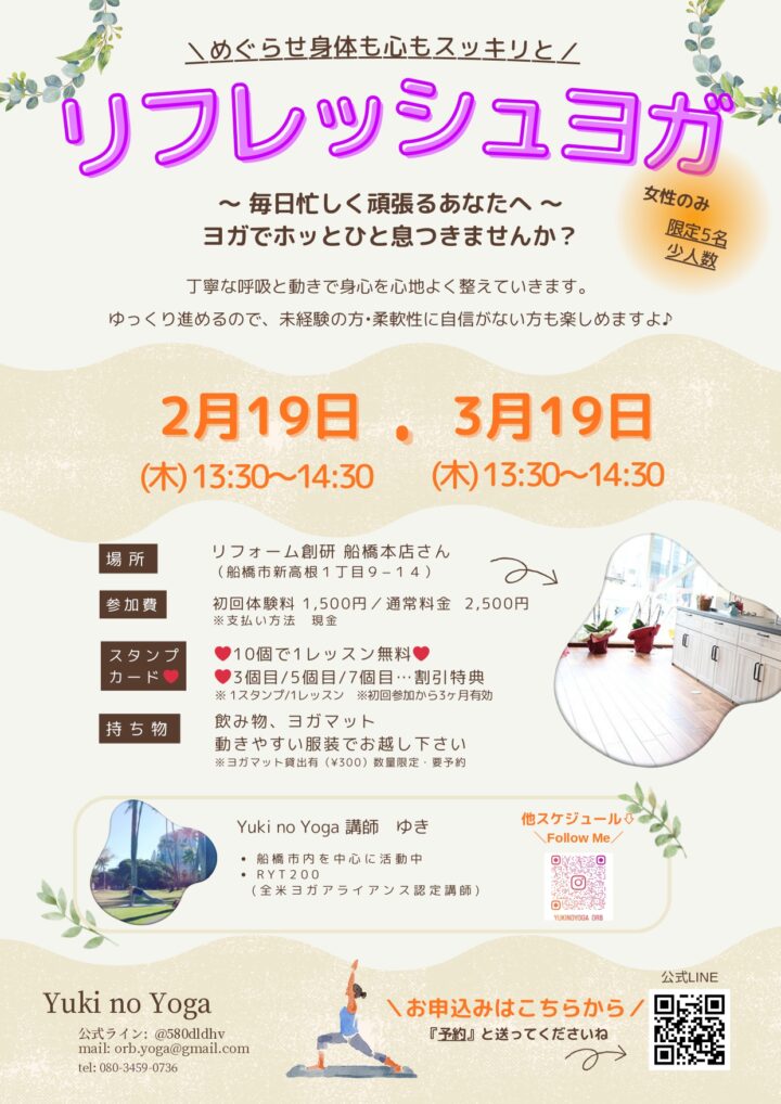リフレッシュヨガ 2/19(木)| リフォーム創研があなたの暮らしを快適にします。