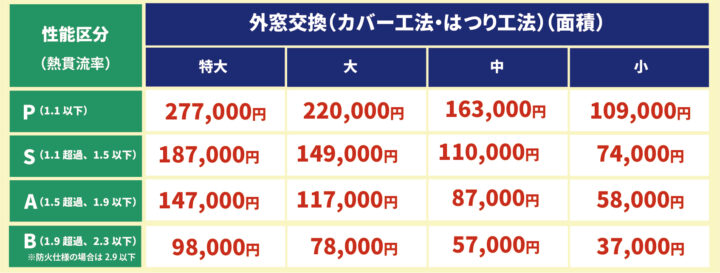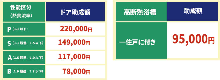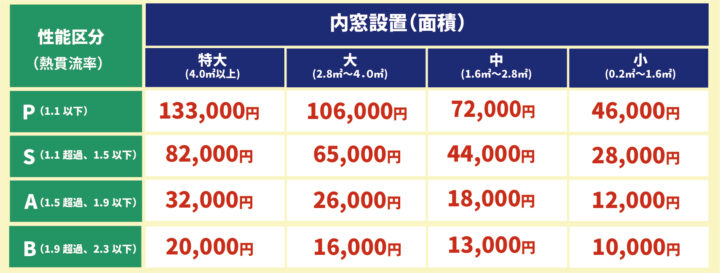 助成額は大きさ、断熱性能力により助成額が変動します。