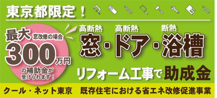 クール・ネット東京 既存住宅における省エネ改修促進事業(高断熱窓・ドア・断熱材・浴槽)