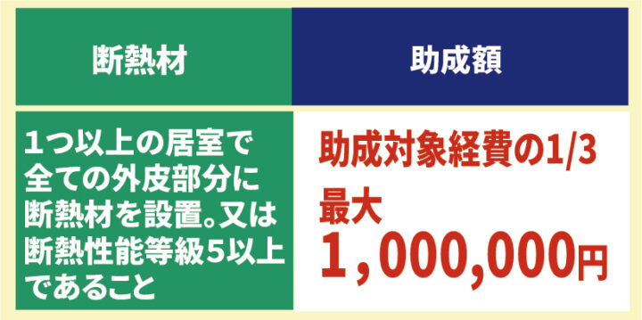 ◆断熱材(助成額は工事費の1/3相当で上限100万円/戸)