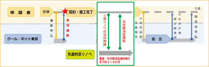 国の補助金「先進的窓リノベ等」と併給する場合、クール・ネット東京の「交付申請兼実績報告」の前に、国の補助金の「交付額決定通知」を取得し、その後クール・ネット東京の「交付申請兼実績報告」を行います!