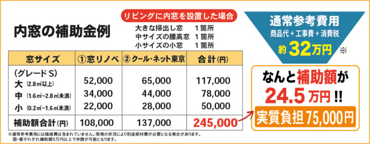 内窓設置 (国と都の補助金を併用)