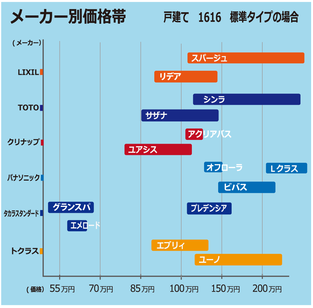 クリナップはシステムキッチンでよく知られています。クリナップの浴室は保温性に優れています。また、カラーバリエーションが豊かなので、好みに合った浴室を選ぶことができます。
