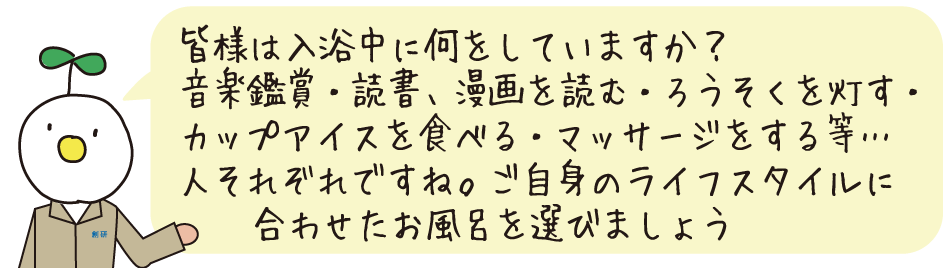 家族構成や入浴スタイル等、普段の使い方を考えながらサイズを検討しましょう。