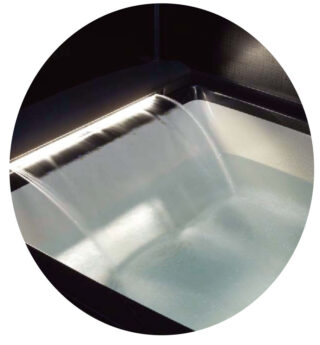 流れる湯が首から肩を優しくなでるように気持ちまでほぐします。美容にも健康にもふさわしい入浴法です。