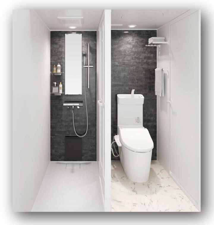1014と1116サイズがあり省スペースでシャワールームとトイレを設置できます。
