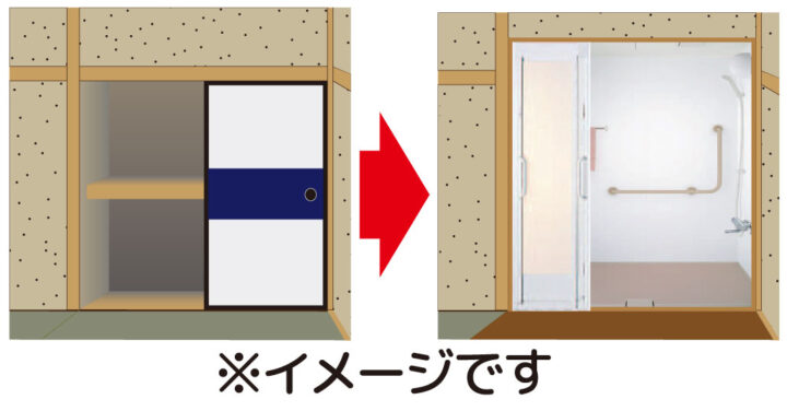 押入れスペースに納まるタイプのシャワールームは大掛かりな工事にならず設置できるのが特徴。