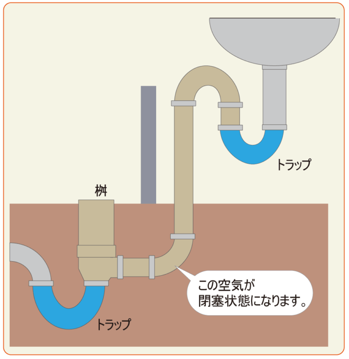トラップとトラップの間の空気が閉塞状態となり排水不良やゴポゴポと音がするようになる場合があります。
