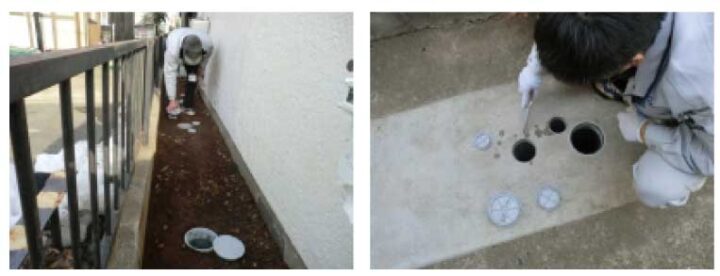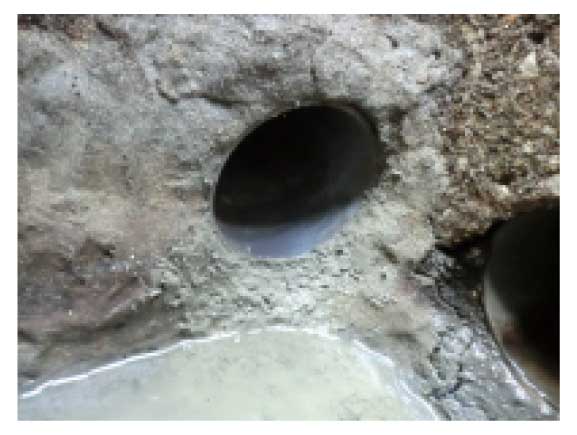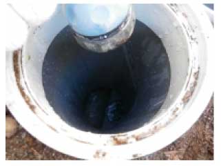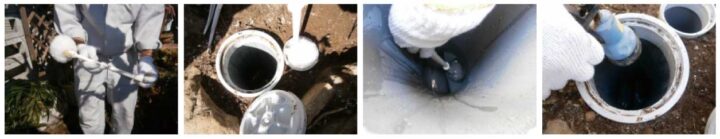 - 既設のコンクリート桝を利用して施工した場合、コンクリート桝と塩ビ管との接続部(目地)を確認