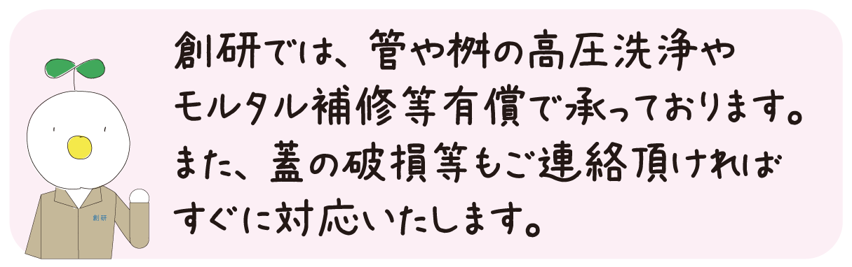 フタは覆わず、重い物を載せないで下さい。桝のフタの上に重い物を置いたりすると、フタが割れることがあります。
