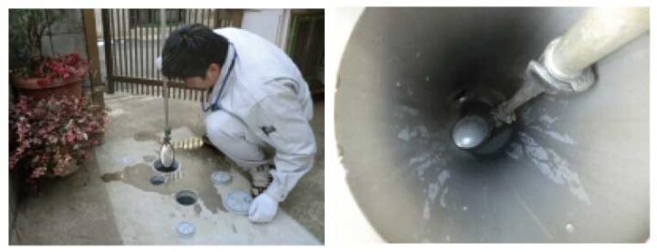 - 宅内からの排水が、滞りなく公共桝へ流入しているか確認