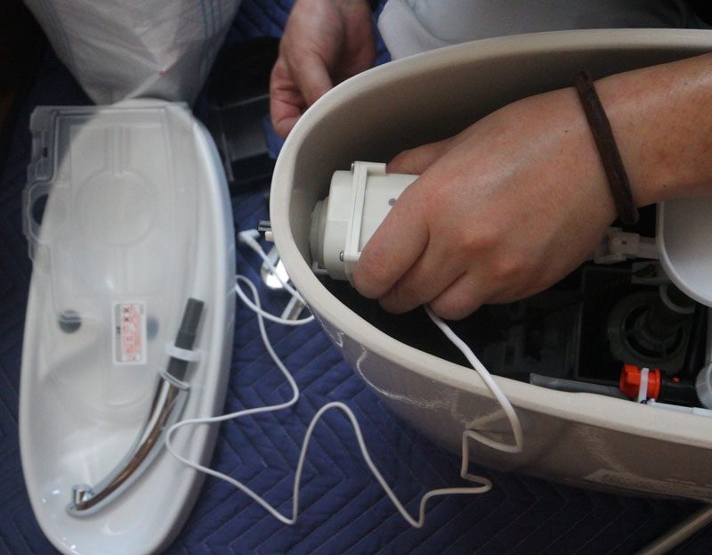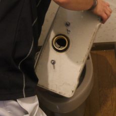 止水後、ウォシュレットの給水管を外し便座を取り外します。