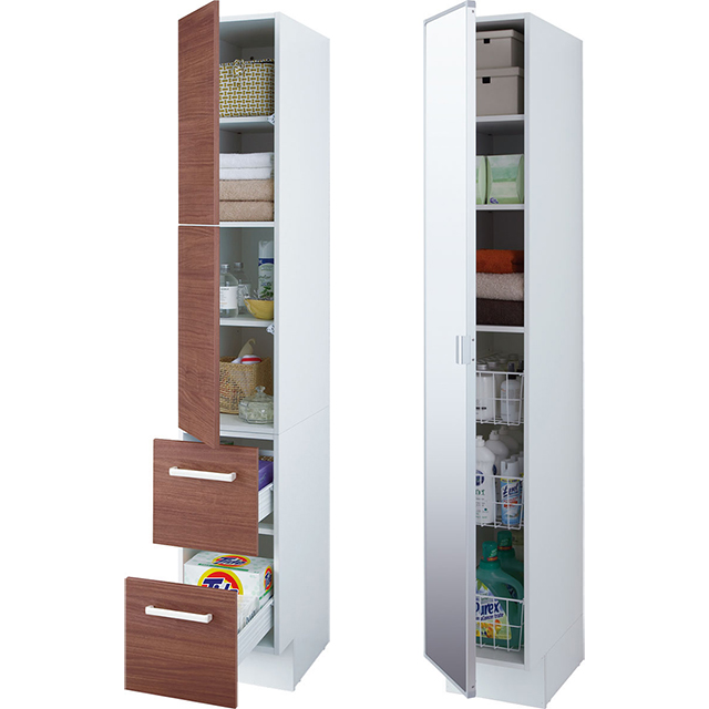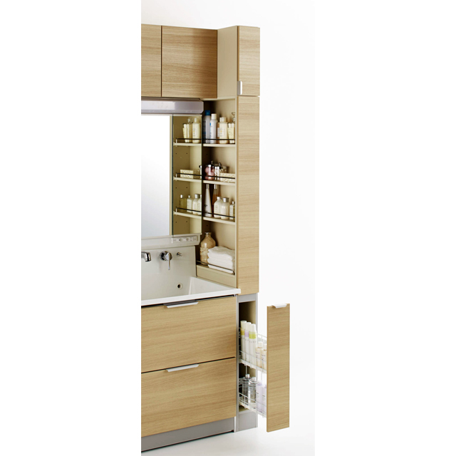 1面鏡の観音開きタイプの洗面化粧台です。