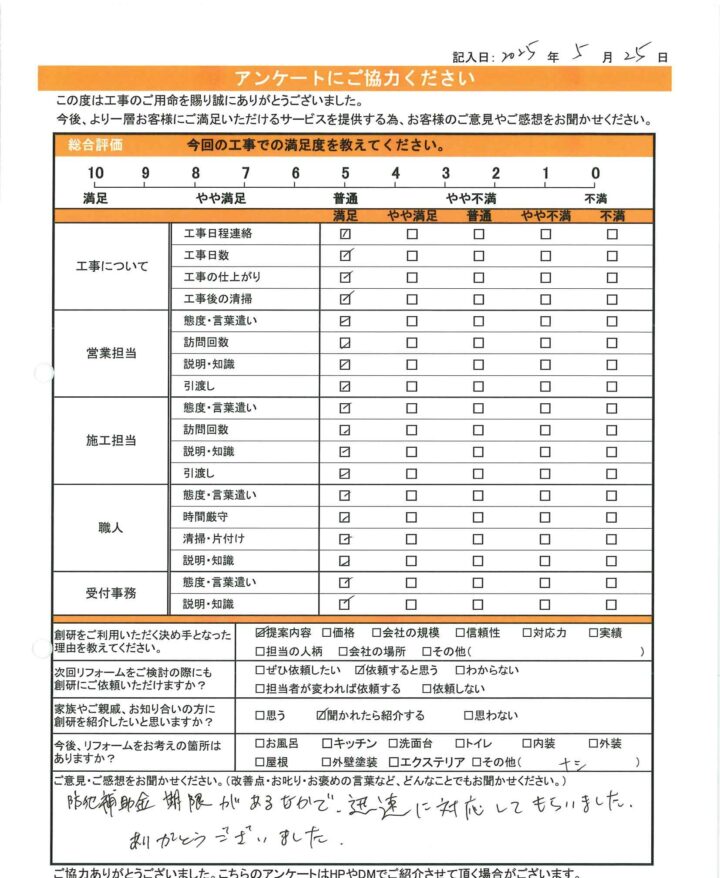 防犯補助金期間があるなかで、迅速に対応してもらいました。ありがとうございました。