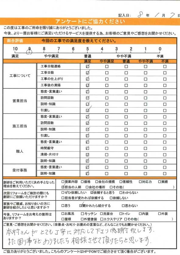 本村さんがとても丁寧に対応して下さり感謝致します。また困り事などありましたら相談させて頂けたらと思います。
