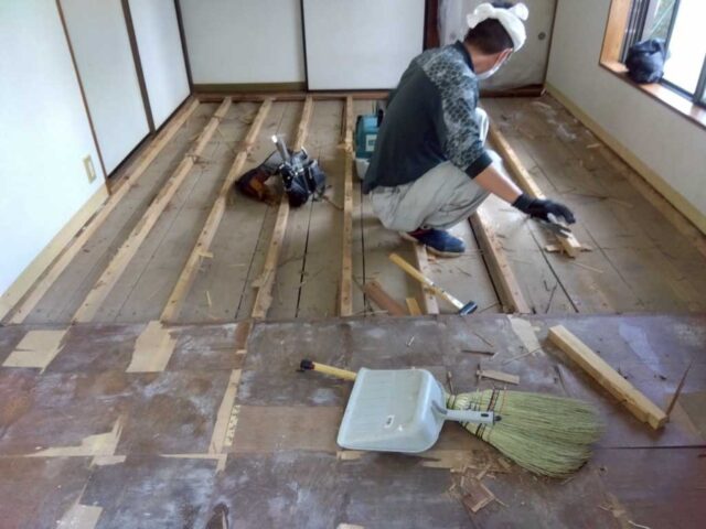 築年数を重ねた住まいで、床を解体すると土が見える状態となっており、